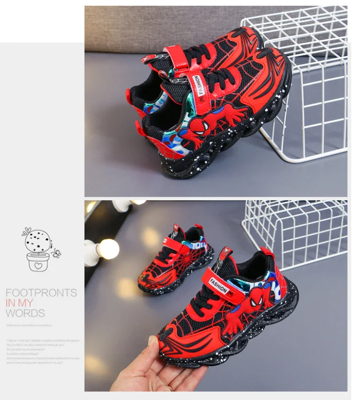 נעליים איכותיות ומהממות של ספיידרמן עם אורות, יש שני צבעים לבחירתכם.